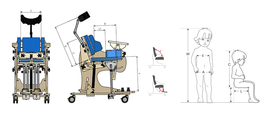 | X | kąt pochylenia oparcia | [°] | 90 – 180 | 90 – 180 | 90 – 180 |
